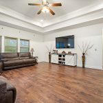 Step inside to a welcoming foyer that leads to a large family room, open to the kitchen and dining area, perfect for entertaining. The kitchen is a chef’s dream, featuring granite countertops, ample cabinetry, a pantry, and modern appliances. Elegant trey ceilings and an open floor plan create a bright and airy feel throughout the home.